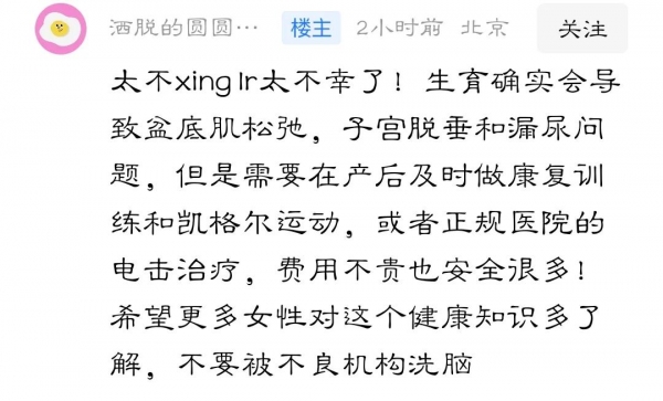 还有网友对王女士的遭遇表示太不幸了ღ✿✿,奉劝大家如果确实有需要的话ღ✿✿,可以多做一些凯格尔运动和康复训练ღ✿✿,或者到正规医院做电击治疗ღ✿✿,效果都是非常好的ღ✿✿。